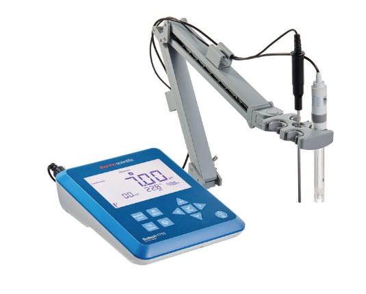 Thermo Scientific Eutech 1700 pH/mV Bench Meter low-maintenance kit, includes meter with gel-filled plastic-body double junction pH electrode, ATC probe, solutions, stand, PC cable and power adapter.