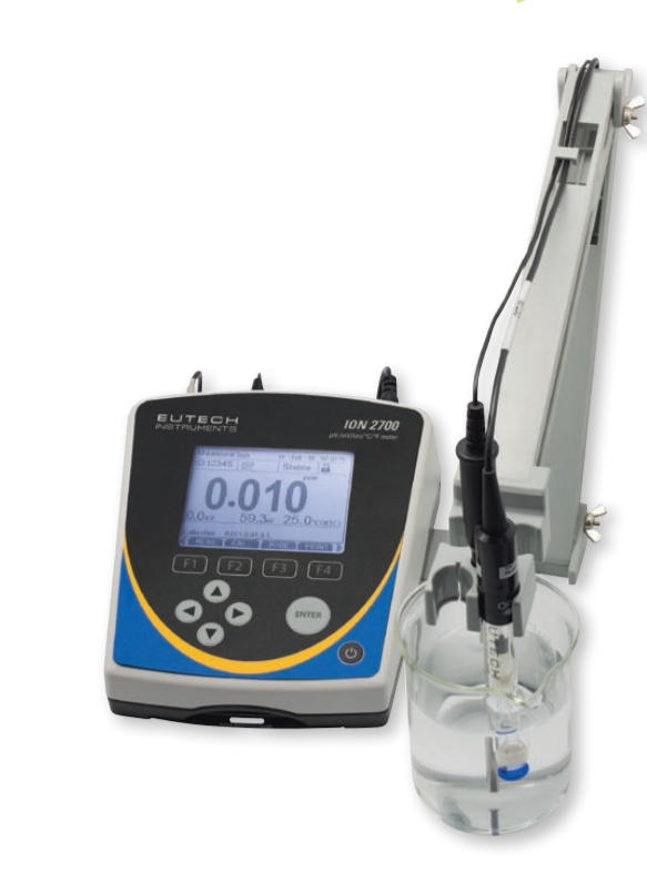 With pH Electrode (ECFG7370101B), ATC Probe (PH5TEMB01P), Integral Electrode Holder, 100/240 VAC Adapter, RS232 cable, & pH Electrode Refill Solution