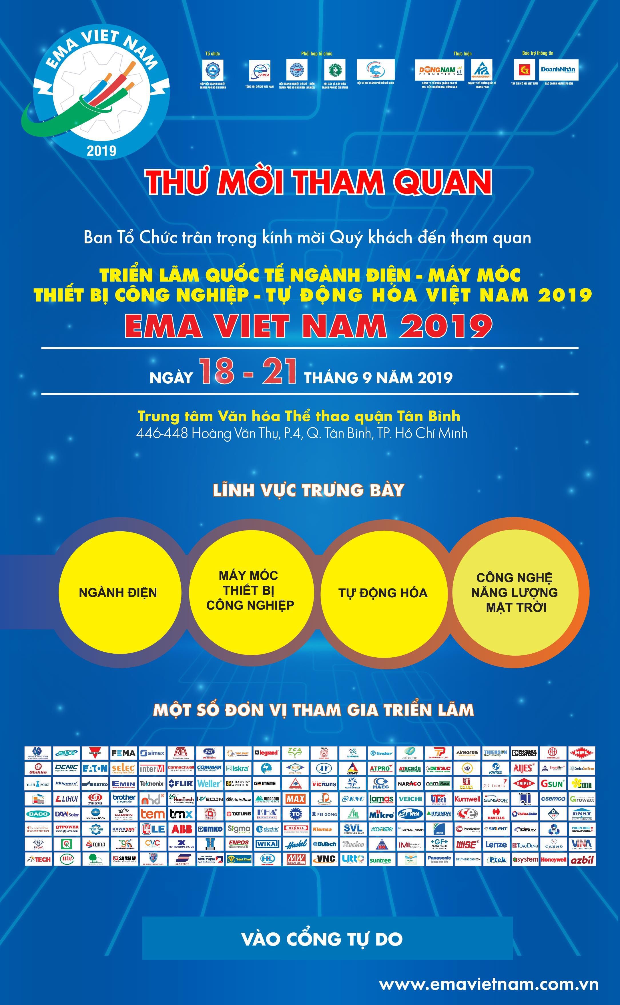 EMA VIET NAM 2019 is organized with the aim of creating conditions for domestic and foreign exhibitors to introduce new products, equipment and technologies. Besides, it is also an opportunity for exhibitors to seek cooperation opportunities, attract investment, transfer of technology, promote trade promotion, bring more efficiency for production and business activities, contribute positively to the socio-economic development of our country.
