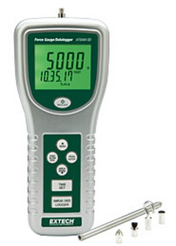Complete with hook adaptor for tension, compression adaptors (fl at, cone and chisel head), 5" extension rod, SD memory card, 6 AA batteries and carrying case