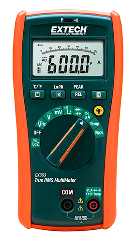 Complete with test leads, 9V battery, holster with tilt stand and built-in magnet, general purpose