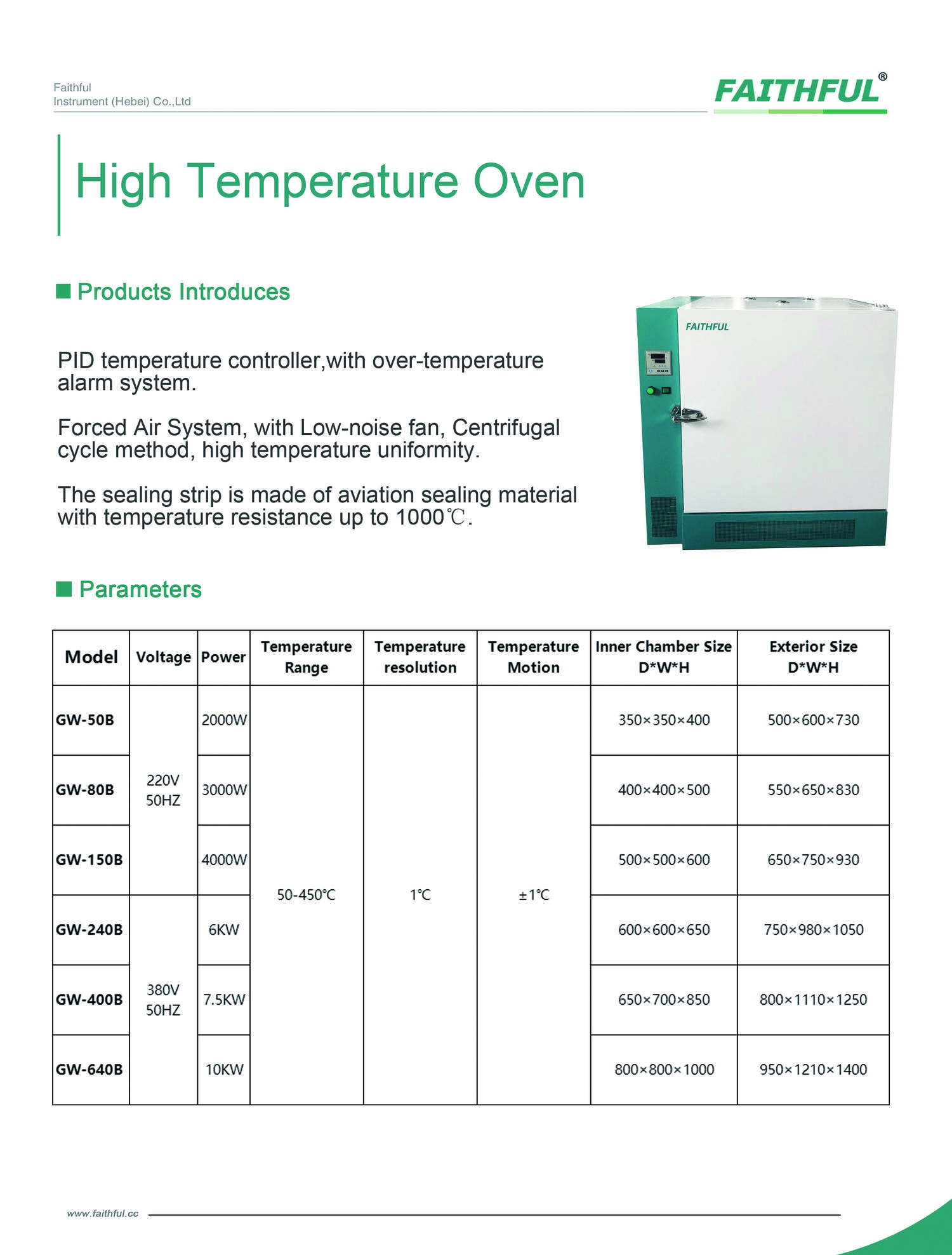 Faithful GW-400B ເຕົາອົບອົບແຫ້ງອຸນຫະພູມສູງ (7.5kW) | EMIN.COM.LA