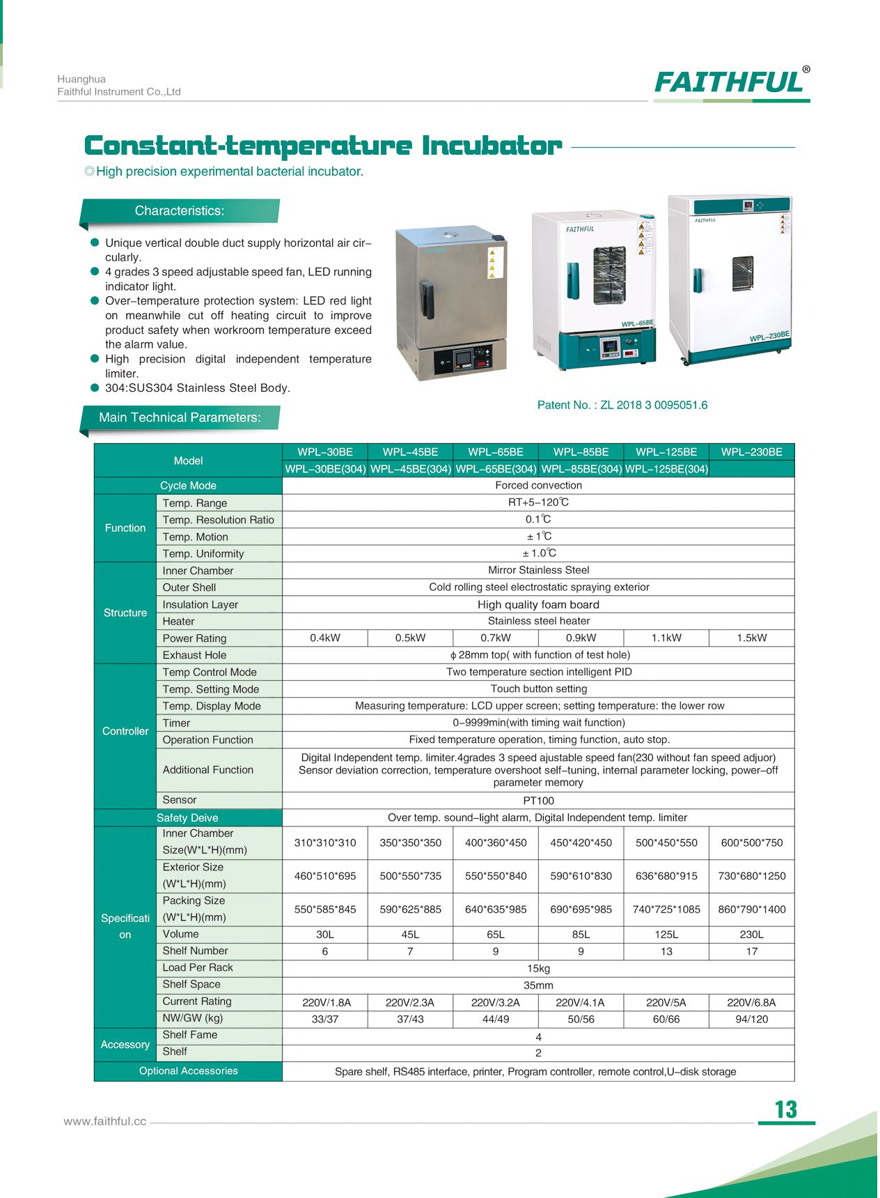 Optional accessories: Shelf, U-disk storage, Printer, 3.5 inch color touch screen temperature controller