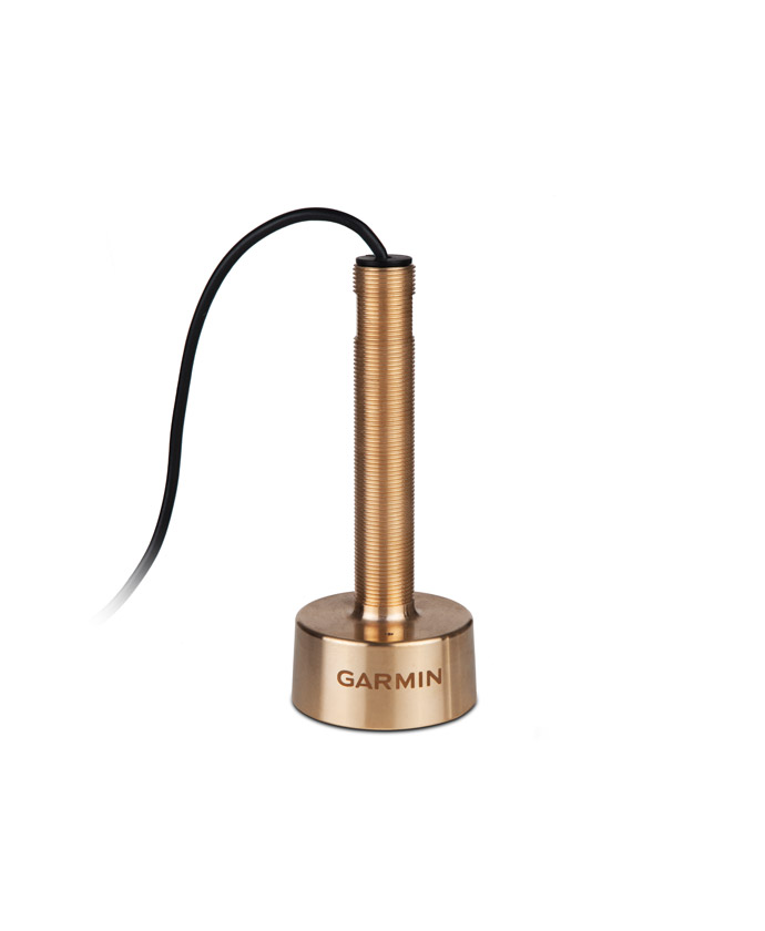 The 8-pin transducer features mid band CHIRP traditional sonar (85-165 kHz) and has a power rating of 600 W. The bronze thru-hull housing and stem makes it ideal for wooden fishing boats.