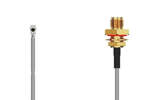 GCT (Global Connector Technology) CAB420RF-0200-A-1 ການປະກອບສາຍ RF I-Pex MHF 4L Lck RA Plug2SMA STRJck F Mt, IP67/68, 3GHz, 200mm, 1.37mm ສີດໍາ