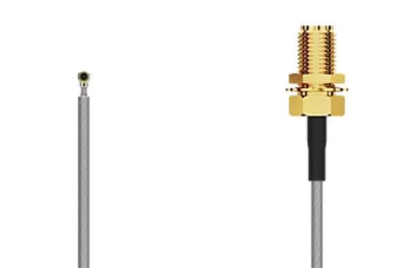 GCT (Global Connector Technology) CAB550RF-0100-A-1 ການປະກອບສາຍ RF I-Pex MHF42SMA RP R Mted BHJck, L=100mm 0.81mm ສາຍສີເຫຼືອງ 6GHZ
