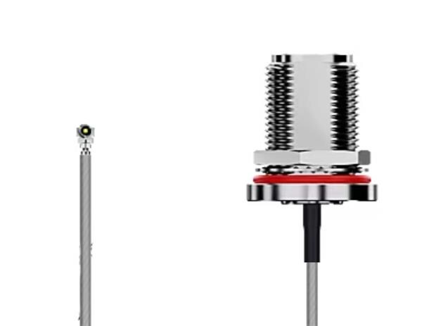 GCT (Global Connector Technology) CAB624RF-0150-A-1 ສາຍສັ້ນ RF HiroseU.FL2N STR BHJck R Mt ມີ O-Ring 6Ghz 150mm Wshr-Nut 1.37mm ສີດຳ IP67/68