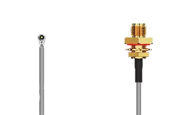 GCT (Global Connector Technology) CAB655RF-0100-A-1 ການປະກອບສາຍ RF U.FL2SMA F Mt BHJck, IP68, L=100mm, ສາຍ 1.13mm 6GHz