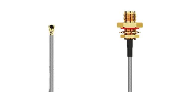GCT (Global Connector Technology) CABLE 197 RF-050-A-4 ການປະກອບສາຍ RF I-Pex MHF I2RPSMA(F) BH, F Mt, ມີ O-ring. 50mm, ແກ້ວອອກ Wshr-Nut ສາຍ RG178, ສີເຫຼືອງ