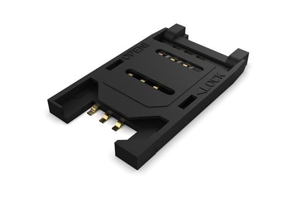 GCT (Global Connector Technology) SIM5060-6-0-26-00-A ຕູ້ເຊື່ອມການດິບກາດ SIM Card Connector, Hinged Type, 6 Pin, SMT, 2.6mm Profile