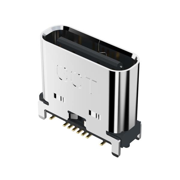GCT (Global Connector Technology) USB4145-03-0070-C PCB ຕິດຕັ້ງດ້ານບູດ USB-C Rec 3u" ແຖວຕັ້ງ 16P SMT 0.7mm TH stakes H7.46mm T+R+Cap