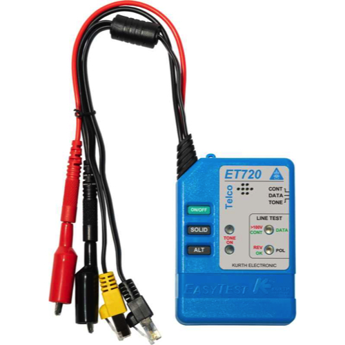 Test Leads: Two 25 cm banana plug test leads made of flexible PVC with clip-on crocodile clips, one test lead with RJ-11 modular plug, one test lead with RJ-45 plug