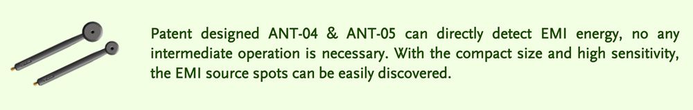Moreover, in the process of EMI debugging, the problem of a magnetic field or an electric field must be considered to solve whether for isolation mechanism, filter circuit or grounding design of the circuit in terms of techniques and methods for solving the problem. The main method is to measure the frequency and amplitude (energy) of the EMI noise so as to confirm which circuit or component produces the interference signal source. The interference can be improved by suppressing the current (such as series resistance) or voltage (such as parallel bypass capacitor). Using the near field probe of GKT-008 to directly measure the electromagnetic energy can directly measure the actual near field electromagnetic energy. There is no need to measure the electric field and the magnetic field separately by using GKT-008, which becomes a more efficient tool. In some special applications, separate analysis of the electric and magnetic fields is required such as larger power motor rotation systems. | ||||||||||||||||||||||