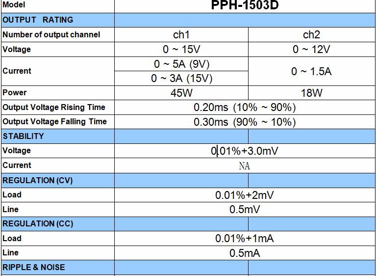 Voltage 0.05%+3mV 0.03%+3mV