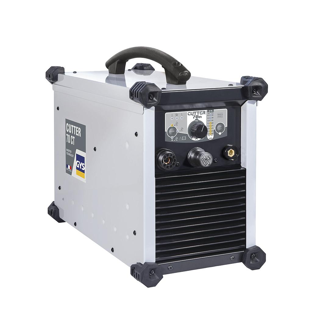 The CUTTER 70 CT is a 70 A plasma cutter with a cutting capacity of 35 mm thick on a multitude of materials. The HF-free arcing system preserves and increases the lifetime of consumables. Designed to be used in difficult environments, it has very robust mechanics and a user friendly control panel. It is prewired for use on automatic cutting tables.