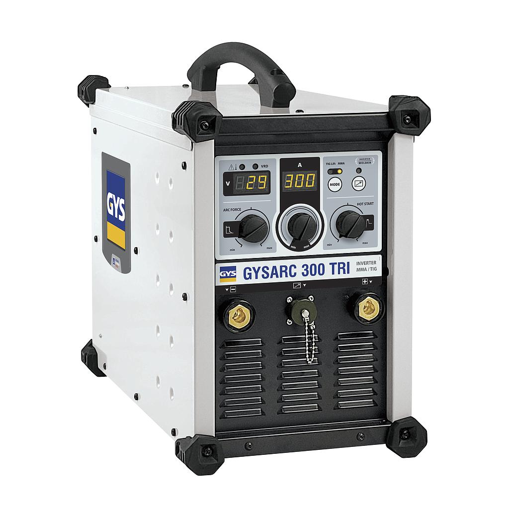 With inverter technology, the GYSARC 300 TRI is a 3-phase MMA (SMAW) / TIG (GTAW) welding power source with exceptional welding performance. Featuring advanced electronics, this product guarantees maximum productivity, even in harsh environments. Its switchable Voltage Reduction Device (VRD) protects the welder in hazardous areas (mines, chemical and petrochemical installations, shipyards, etc.).