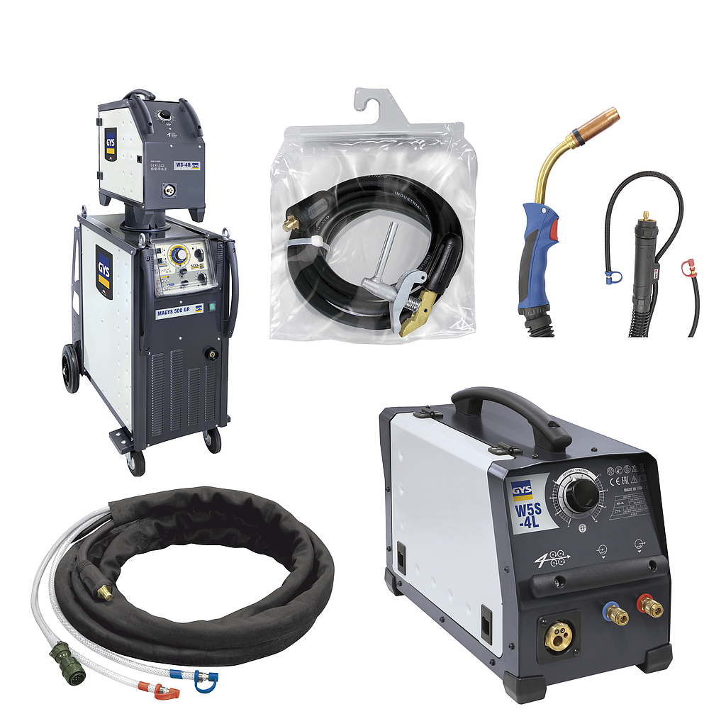 The MAGYS 500 WS with its wire feeder is a “synergic” 3-Phase MIG/MAG with water cooled system. Its heavy duty design and high duty cycle make it ideal for industrial environments welding steel, stainless-steel and aluminium 95mm2 connection cable in 5 or 10 meters, are especially made for intensive work up to ø1.6.