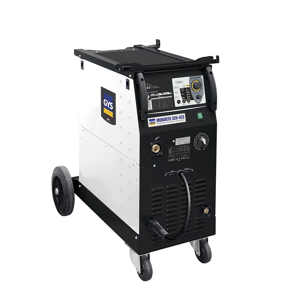 The MONOGYS 320-4CS is the ideal «synergistic» semi-automatic welding machine for light fabrication, maintenance and industrial production workshops. The 320 monogys can weld steel, stainless steel, aluminium and capable of using 1.2mm wires with its 320 amp output