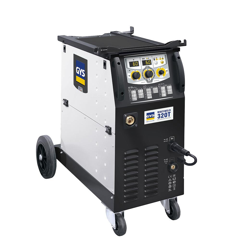 The MULTIWELD 320T is a semi automatic tri-phase welding machine, combining MIG/MAG, cored wire and MMA welding processes. Its intuitive interface integrates digital displays for easy and precise adjustment. Fitted with a powerful and precise 4 drive roll feeding system, the MULTIWELD 320T is perfect for welding Ø 1.2 mm wire without difficulty. Its welding performance is impeccable even when using aluminum.