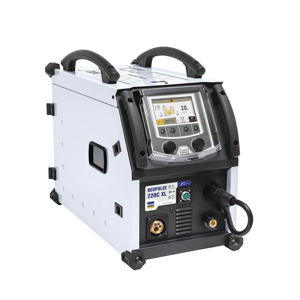 The NEOPULSE 220 C XL is a single-phase pulsed MIG/MAG generator with digital technology. Designed for the highest performance level using the latest technology, it features numerous synergic curves and exceptional arc quality/performance. Intuitive and highly functional, the digital interface allows for quick and easy modifications of the welding parameters. Fitted with an accurate and powerful 4 drive roll feeding system, the NEOPULSE 220 C XL offers manufacturers maximum productivity.
