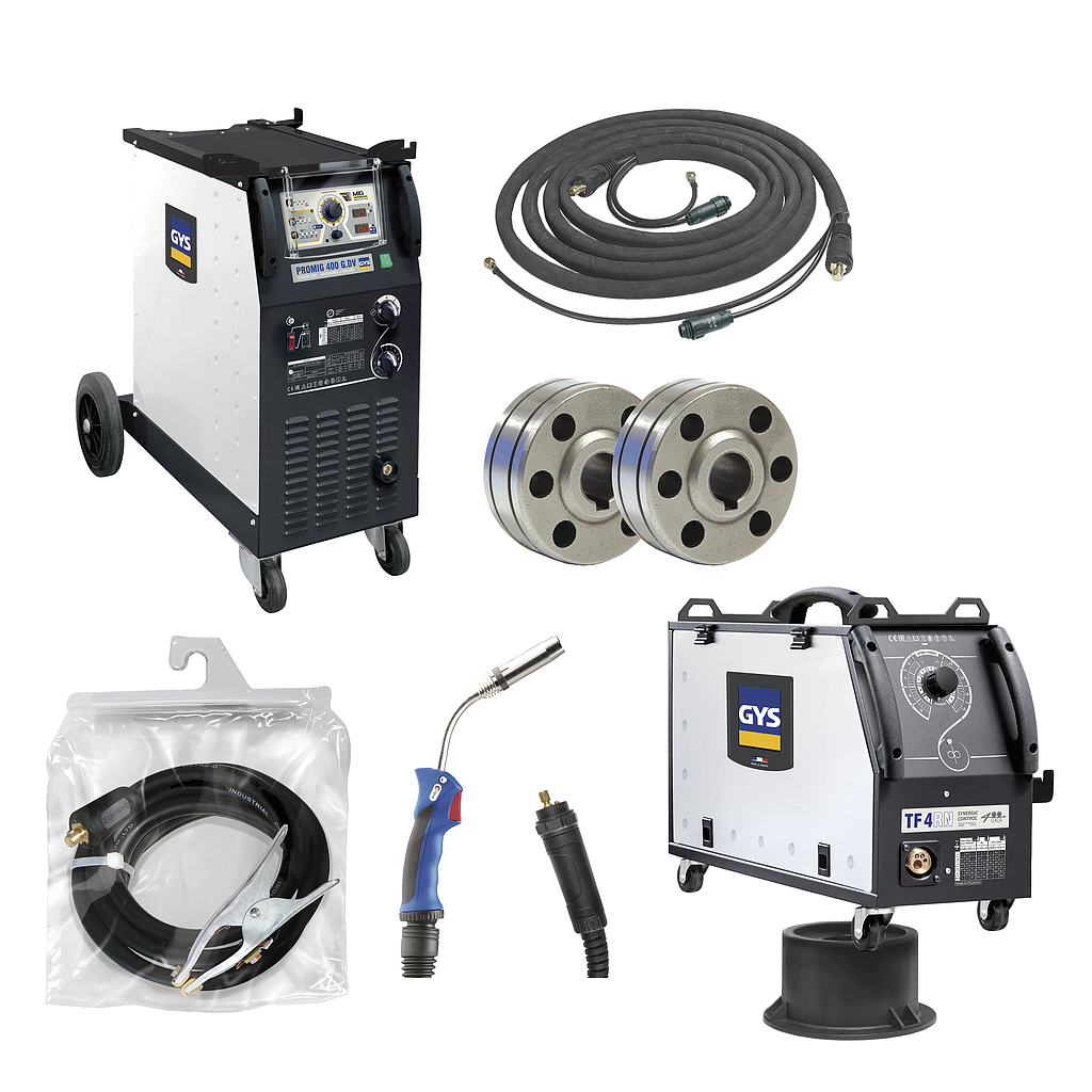3 Phase Synergic welding machine ideal for semi industrial work, maintenance and locksmith work. For use with separate wire feeder (TF 4R), the Trimig 400G is recommended for professional work up to a 1.2mm on steel, stainless-steel and aluminium Easy and fast set up with its synergic control.