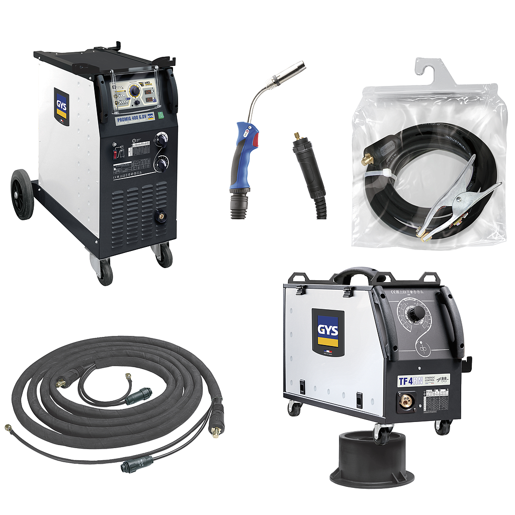 3 Phase Synergic welding machine ideal for semi industrial work, maintenance and locksmith work. For use with separate wire feeder (TF 4R), the Trimig 400G is recommended for professional work up to a 1.2mm on steel, stainless-steel and aluminium Easy and fast set up with its synergic control.