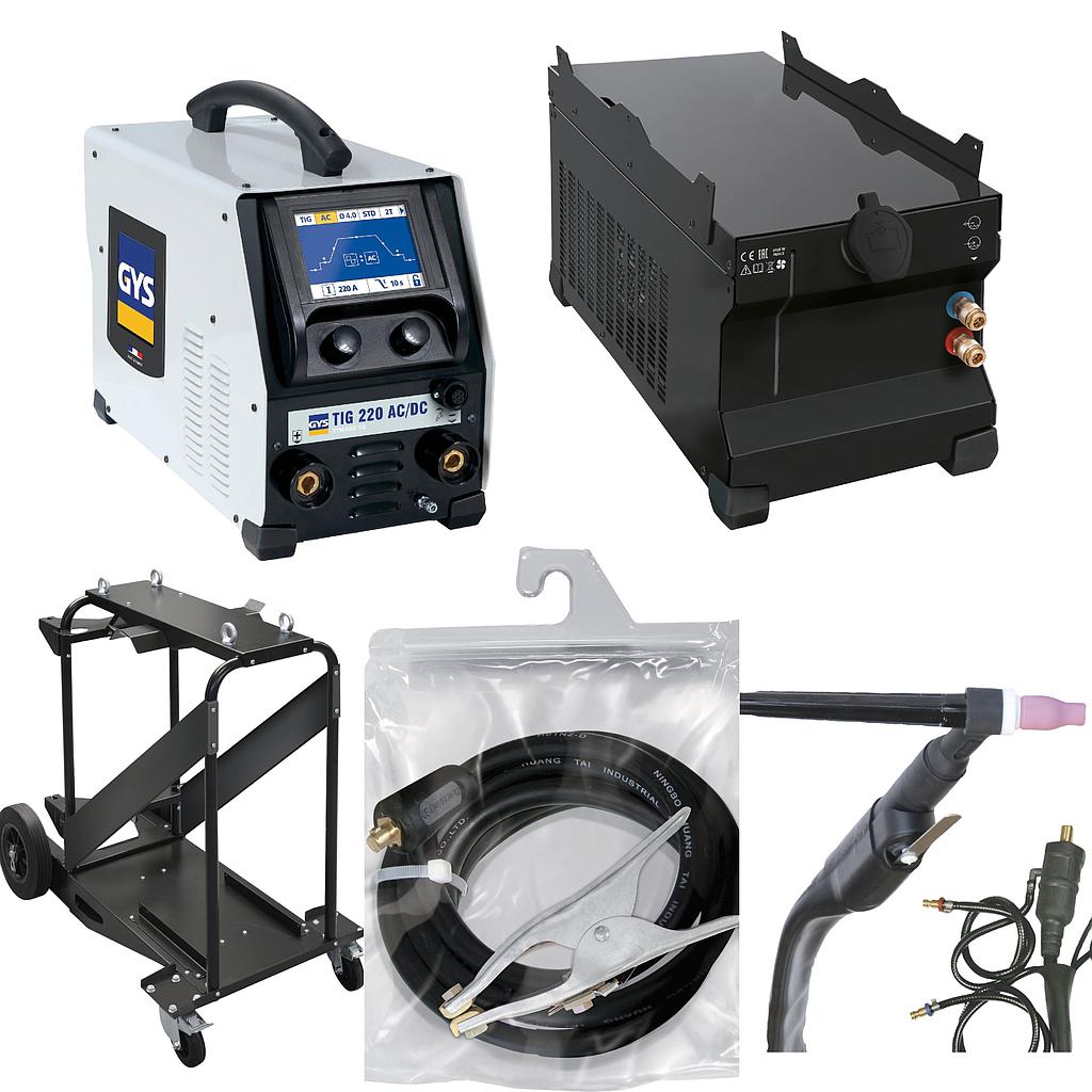 Professional, single phase, 220 Amp AC/DC TIG welding machine, suitable for welding most materials including steel, stainless, aluminium and copper. Manufactured in France.