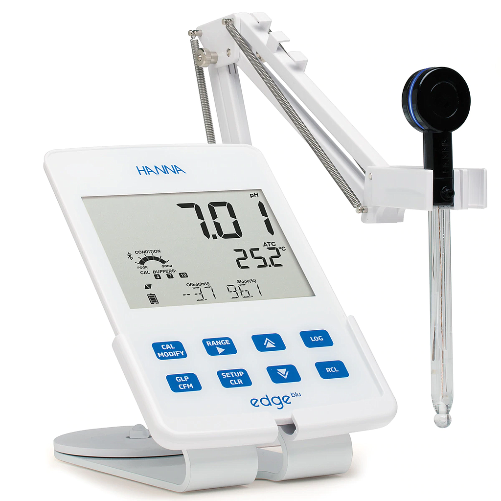 Ordering Information: HI2202 edge® blu includes benchtop docking station with electrode holder, wall mount cradle, USB cable, HI11102 glass body,
