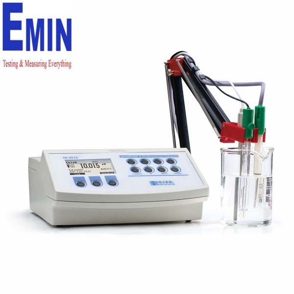 Ordering Information: HI3512-02 is supplied with HI76310 EC/TDS probe, HI1131B pH electrode, HI7662-T temperature probe, HI70004 pH 4.01 buffer solution sachet, HI70007 pH 7.01 buffer solution sachet, HI700601 electrode cleaning solution sachet (2), HI7082 3.5M KCl electrolyte solution (30 mL), HI76404N electrode holder, 12 VDC adapter and instructions.