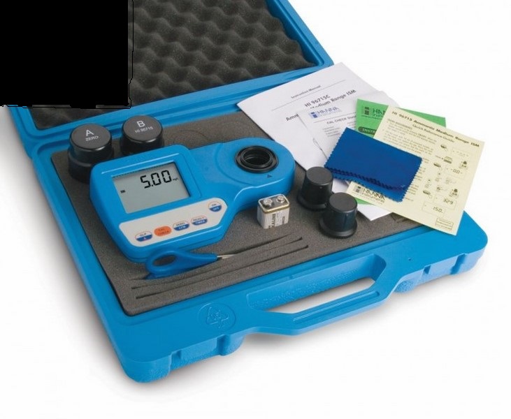 Order Information: HI 96770C includes photometer, sample cuvettes with caps (2 ea.), 9V battery, scissors, cloth for wiping cuvettes, instrument quality certificate, instruction manual and rigid carrying case.
