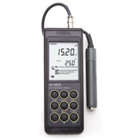 + EC: automatic, one point with six memorized values (84, 1413, 5000, 12880, 80000, 111800 µS/cm)