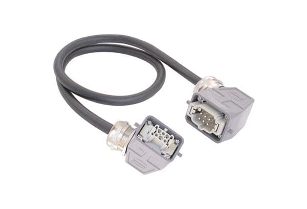 HARTING 20871463002100 Heavy Duty Power Connectors Han 6E Power Cable Assembly, Single Lever Metal Hoods, Side Entry, Male/Female Double Ended, UL2237 Listed, 1.0m