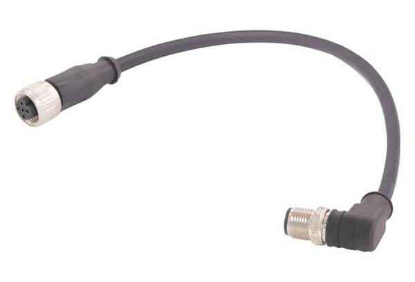 HARTING 213475D2568030 Harting M12 A-code Single Ended Overmolded Cable Assembly, 5pin, shielded, angled male to straight female, PUR Black, 3.0m | EMIN.COM.LA