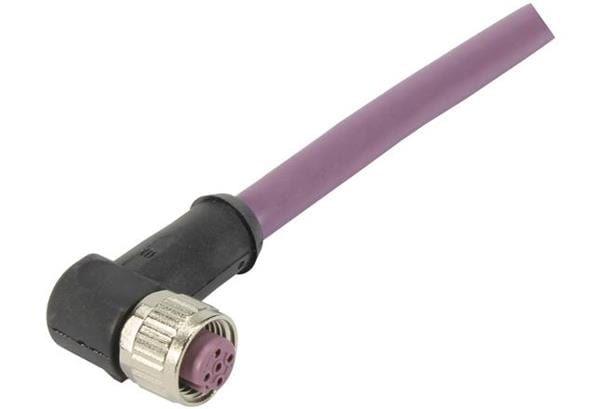 HARTING 21349100487005 ເສັ້ນສາຍເຊນເຊີ / ເສັ້ນສາຍເຄື່ອງຂັບ M12 B-code Single Ended Overmolded Cable Assembly, 2pin, angled female, TPE violet, 0.5m