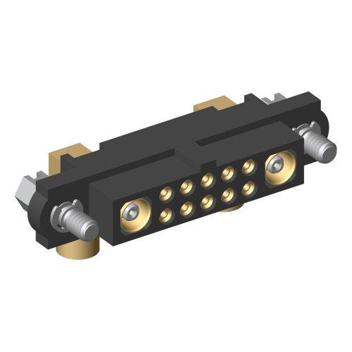 Harwin M80-4C11005F1-01-309-01-309 ພາວເລີ້ມໃຫ້ກັບບອດ Datamate 2-Row Mix-Tek Female Crimp Connector, Hexagonal slotted jackscrews, 10 x Small Bore (24-28 AWG) signal contacts, 2 x 2.7mm 90 degree Crimp Coax contacts