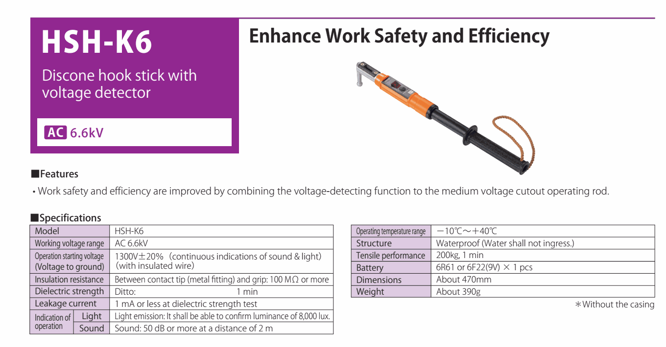 Operation starting voltage (Voltage to ground): 1300V±20% (continuous indications of sound & light) (with insulated wire)