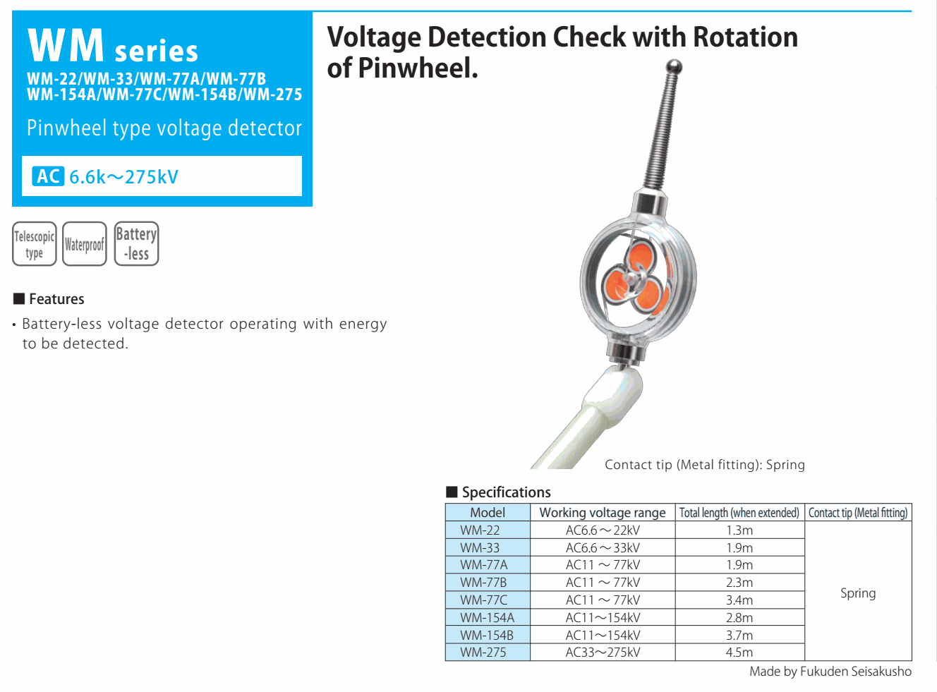 HASEGAWA WM-33 ເຄື່ອງກວດຈັບແຮງດັນປະເພດ Pinwheel (AC6.6~33kV) | EMIN.COM.LA