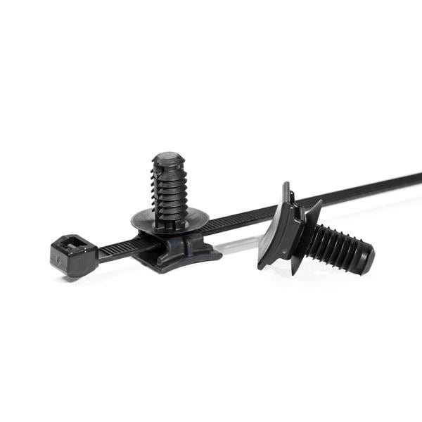 HellermannTyton 156-01561 ສາຍຜັນສະບັບມີຂາຍ 2-ຊິ້ນ Cable Tie with Fir Tree Mount, 15" L, 0.35" (9mm) Hole, 120lb, PA66HS/PA66HIRHSUV, ສີດຳ, 100/pkg