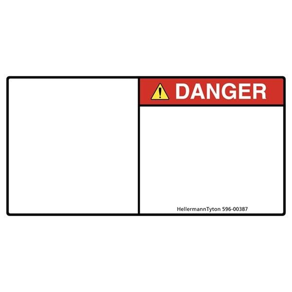 HellermannTyton 596-00389 ເປັນປ້າຍຫົວຂໍ້ພິມລ່າສຸດຂອງແຜ່ນປ້າຍພິມພື້ນຖານພາຍໃນ, ອັນຕະລາຍ, ແຜ່ນສັນຍາລັກວ່າງ, 2.75" x 5.50", PET, ແດງ, 250/ມໍ