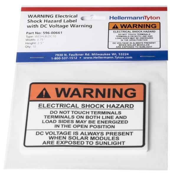 HellermannTyton 596-00661 ເປັນປ້າຍພວມແສງອາທິດ, ເປັນປ້າຍພວມແສງອາທິດ, ເຕືອນອັບພະຍາດການດັບໄຟຟ້າ, DC ໂວລ໌ເຕີຈ, 3.75" x 2.5", VL, ສີສຸດສົດ, 10/ຊຸດ