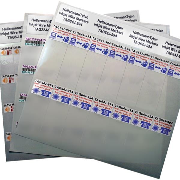 HellermannTyton TAG22J-994 ເຄື່ອງຫັດແບບລາບເບີ້ງ Thermal Transfer Label Inkjet Label, ຕົວລາບທີ່ມີການປົວປ້ອງຕົວເອງ, 1.0" x .5" x 1.63", 32 ຊິ້ນຕໍ່ແຜ່ນ, PET, ສີຂາວ, 1000/ຊຸດ