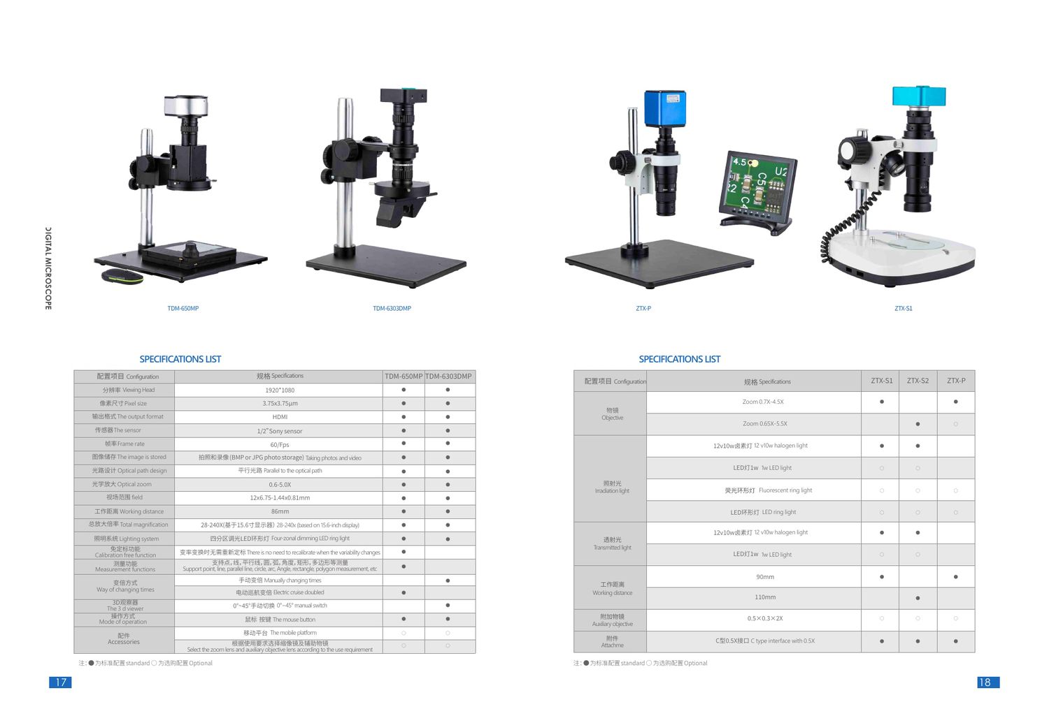 Accessories: The mobile platform; Select the zoom lens and auxiallry objective lens according to the use requirement