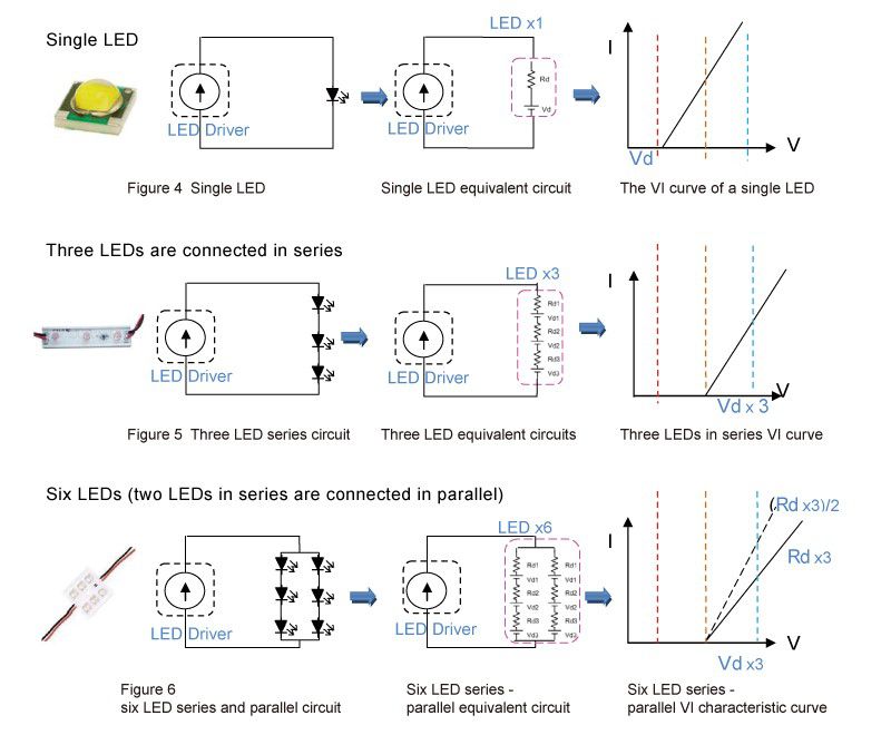 The output of an LED driver has a constant current profile. The output voltage is based on the LED equivalent on voltage Vd and the equivalent series resistance Rd. Unlike a traditional power supply, the output is a fixed voltage which necessitates the use of an LED electronic load to quickly simulate and verify performance and reduce the product development schedule for shorter time to market.