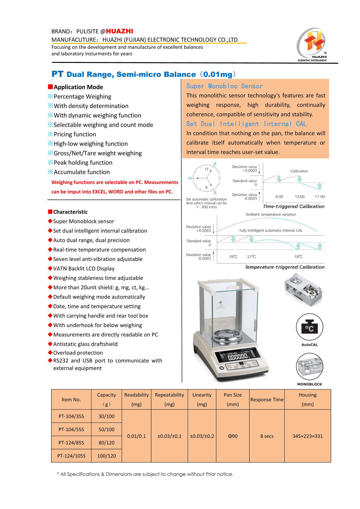 HUAZHI PT-124/85S ການດຸ່ນດ່ຽງເຄິ່ງຈຸນລະພາກ (80/120g, 0.01/0.1mg) | EMIN.COM.LA
