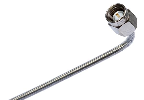 HUBER+SUHNER Minibend L-2.5 RF Cable Assemblies Assembly: minibend_L cable with male SMA plug connectors on both ends. Length: 2.5 Inches