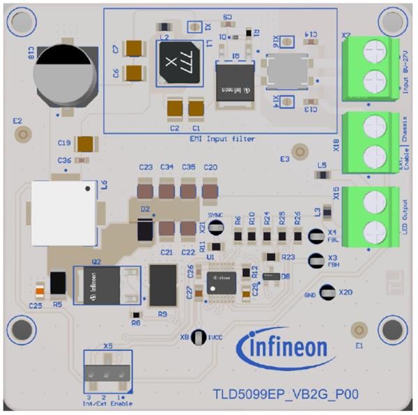 Infineon TLD5099EPVB2GEVALKTOBO1 ຕົວຄວບຄຸມແຮງດັນ - ຕົວຄວບຄຸມສະຫວັດ TLD5099EP_VB2G EVALK | EMIN.COM.LA