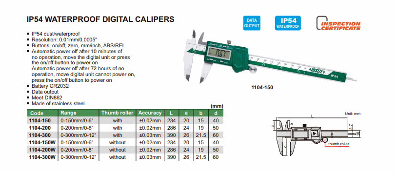 INSIZE 1104-150W IP54 Waterproof Digital Caliper (0-150mm/0-6") | EMIN.COM.LA