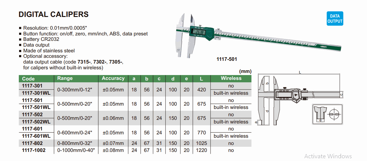 INSIZE 1117-301WL Digital Caliper (0-300mm/0-12"; 0.01mm/0.0005") | EMIN.COM.LA
