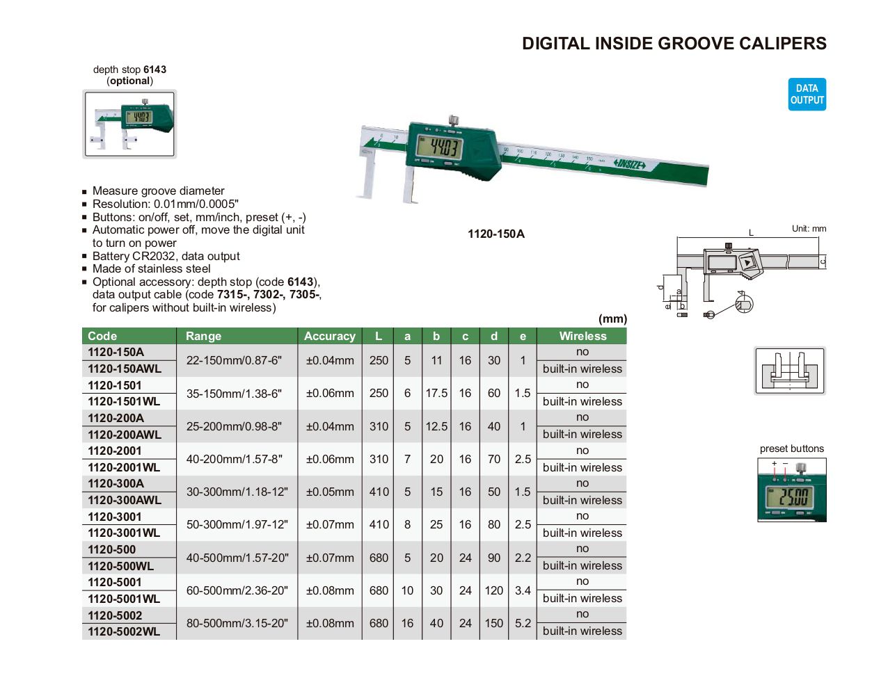 INSIZE 1120-3001 Digital Inside Groove Caliper (50-300mm/1.97-12") | EMIN.COM.LA