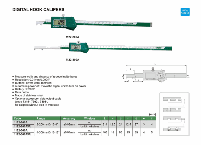 INSIZE 1122-200AWL Digital Hook Caliper (3-200mm/0.12-8") | EMIN.COM.LA
